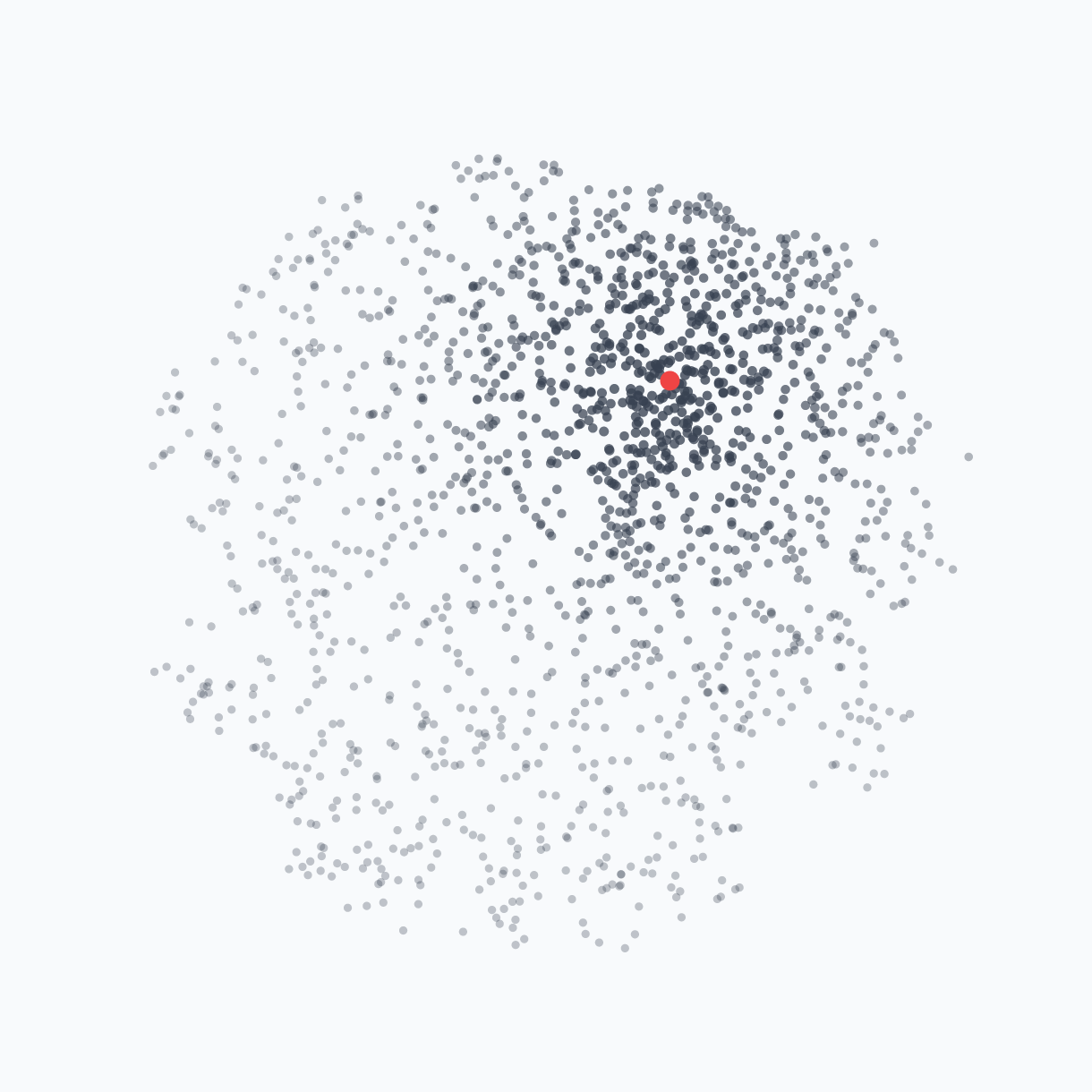 I wanted to create a simple visual to illustrate this gap between intuition and reality. I generated two diagrams showing the same parameter space with a red dot representing the optimal parameters (or a good solution).